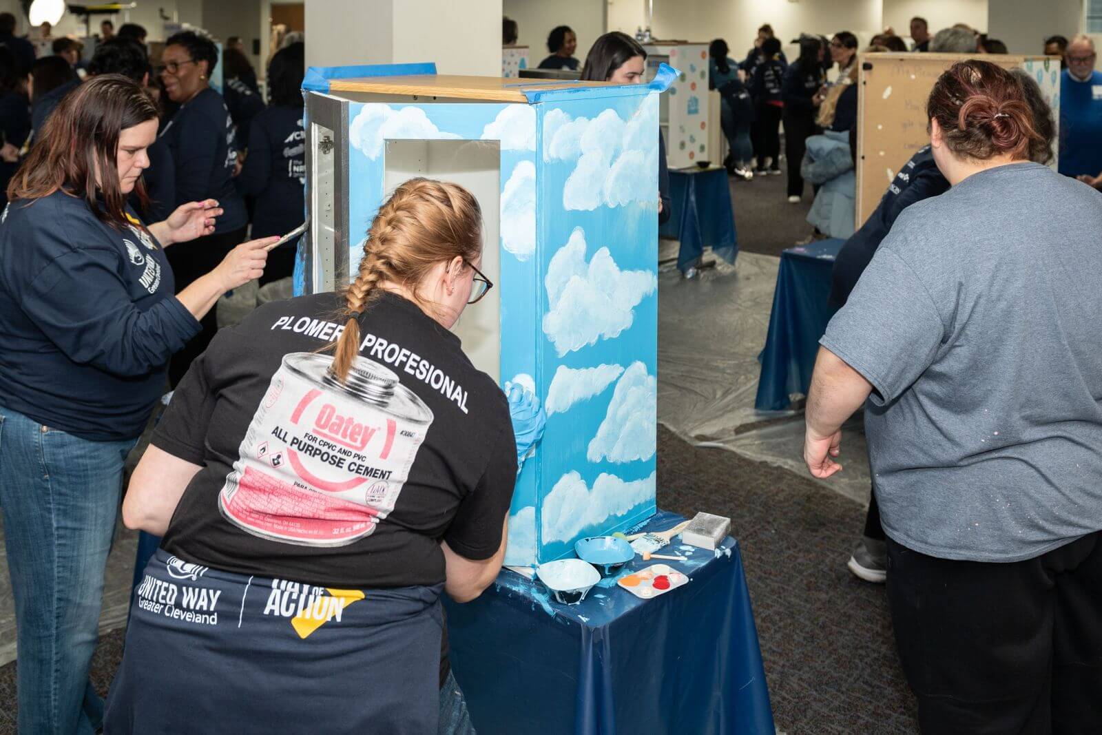Volunteers gathered at United Way’s downtown Cleveland offices to build and prepare stock for 30 Blessing Boxes, which will be installed in all Cleveland Public Library branches across the city within the next two weeks. Modeled after Little Free Libraries, the boxes operate on a take what you need, leave what you can philosophy and provide free access to everyday essentials, including hygiene items, baby supplies, cleaning products, shelf-stable food, and more.